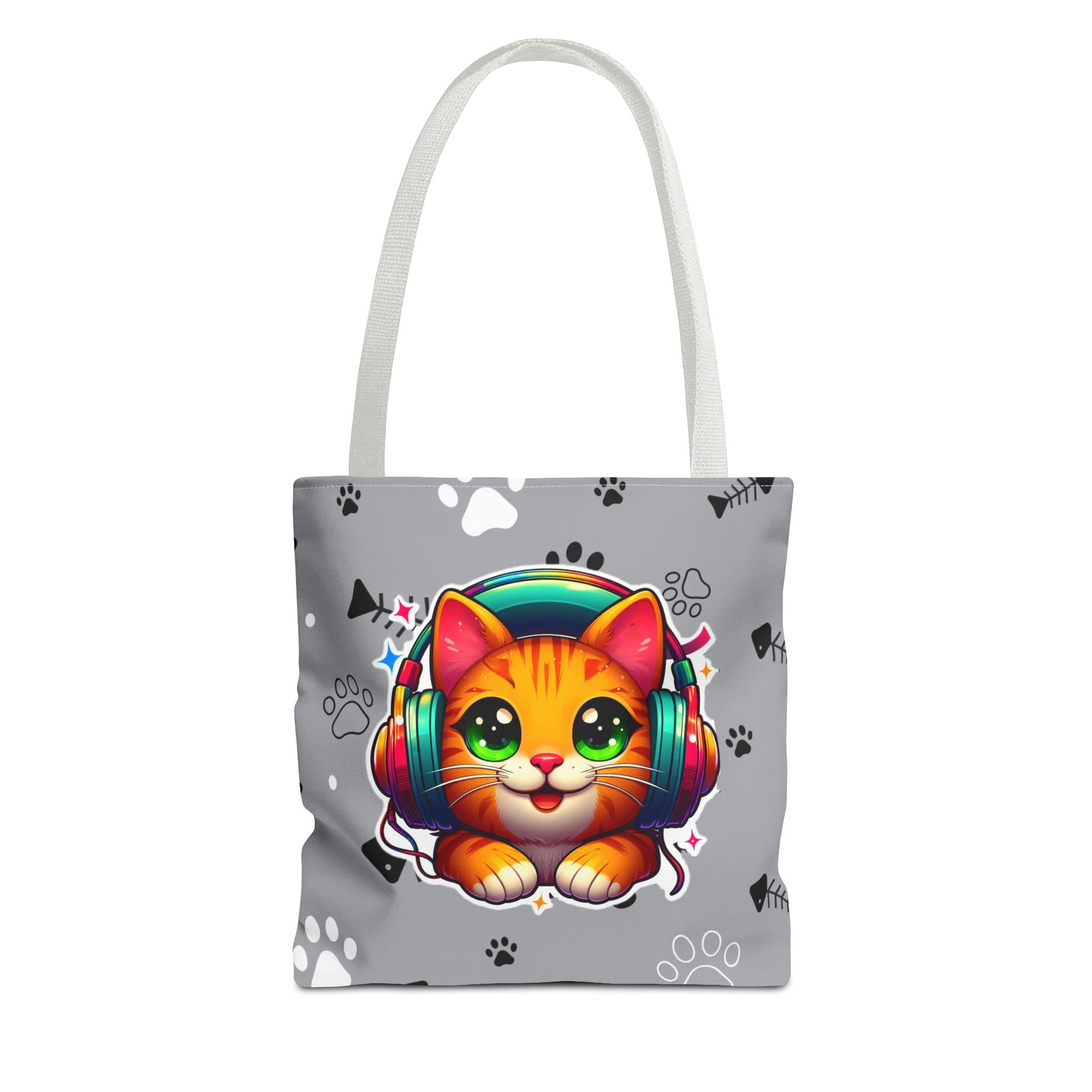 This tote bag features an adorable orange tabby cat wearing headphones, adding a fun and playful vibe to your everyday essentials. Perfect for cat lovers and music enthusiasts, this tote bag is ideal for carrying books, groceries, or anything you need on the go. It's a great accessory for casual outings, trips to the beach, or running errands. A cute and functional gift for birthdays, holidays, or any cat-themed celebration.